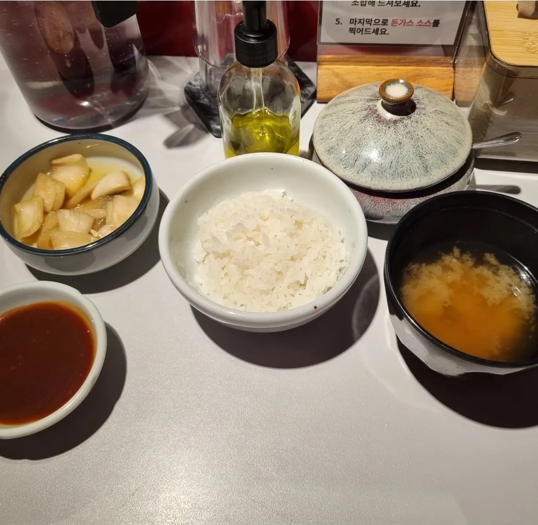 헤키에서 돈카츠를 맛있게 즐기는 방법은 여러 가지가 있었는데요. 기본적으로 제공되는 소금에 찍어 고유의 맛을 느끼거나, 알싸한 와사비를 살짝 곁들여 풍미를 더할 수도 있었습니다. 특히 트러플 오일과 소금을 함께 찍어 먹으니 고급스러운 풍미가 더해져 돈카츠의 맛을 한 단계 끌어올려 주더군요. 물론, 돈카츠 소스에 찍어 먹는 고전적인 방법도 여전히 맛있었습니다.